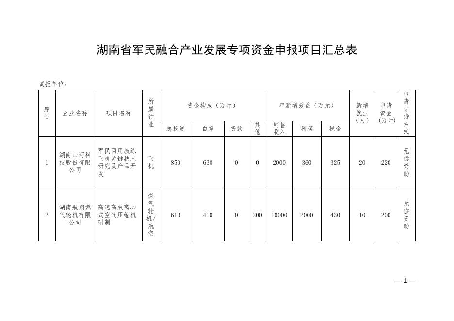 株洲市汇总表:湖南省军民融合项目汇总表.docx