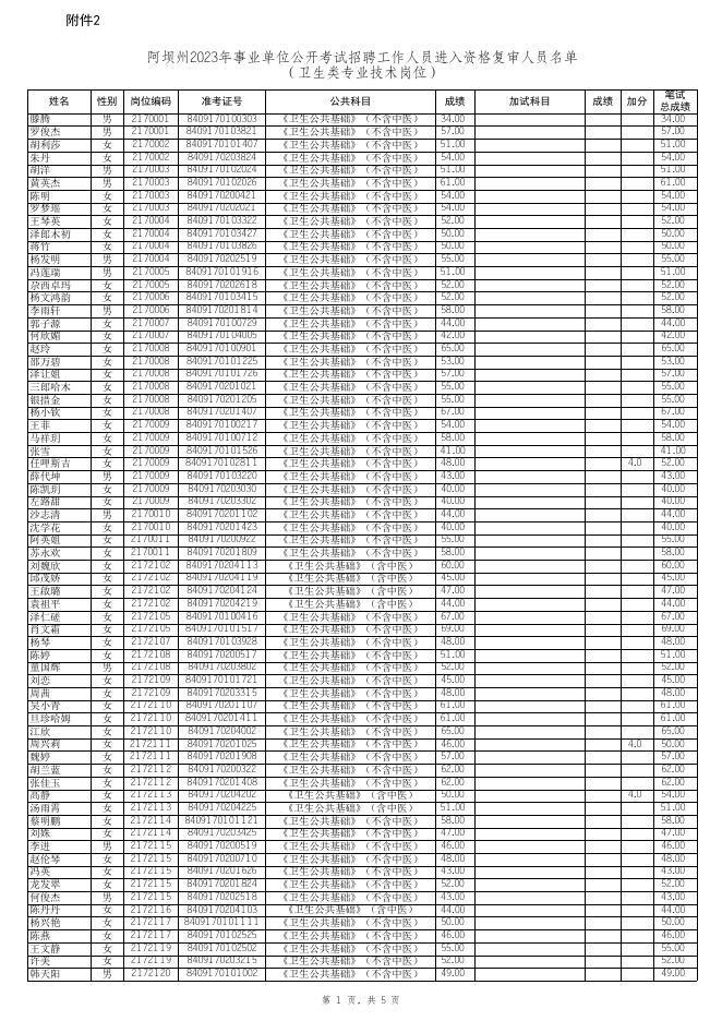 2.阿坝州2023年事业单位公开考试招聘工作人员进入资格复审人员名单(卫生类专业技术岗位).xlsx