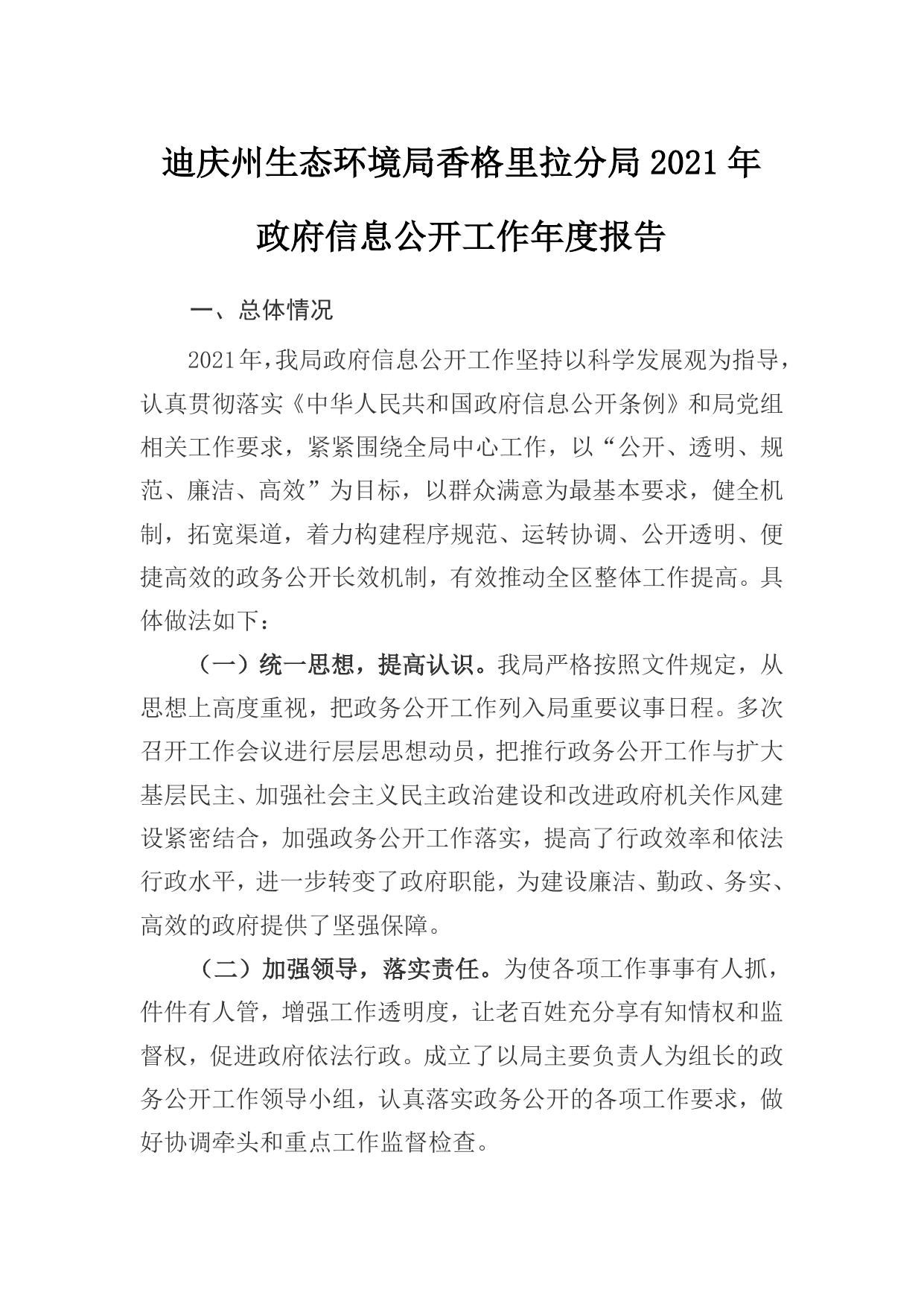 迪庆州生态环境局香格里拉分局2021年政府信息公开工作年度报告.docx