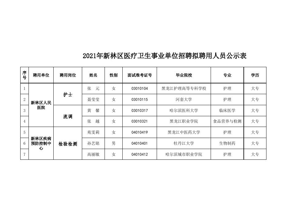 2021年新林区医疗卫生事业单位招聘拟聘用人员公示表.xlsx