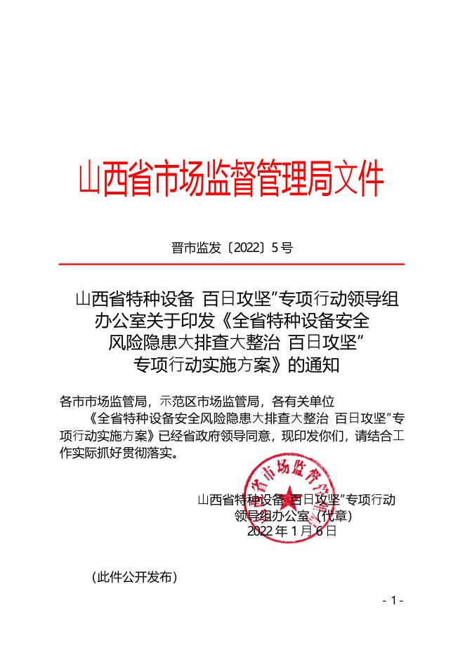 山西省特种设备“百日攻坚”专项行动领导组办公室关于印发《全省特种设备安全风险隐患大排查大整治“百日攻坚”专项行动实施方案》的通知.pdf