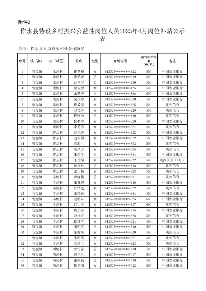 柞水县特设乡村振兴公益性岗位人员2023年4月岗位补贴公示表.xlsx
