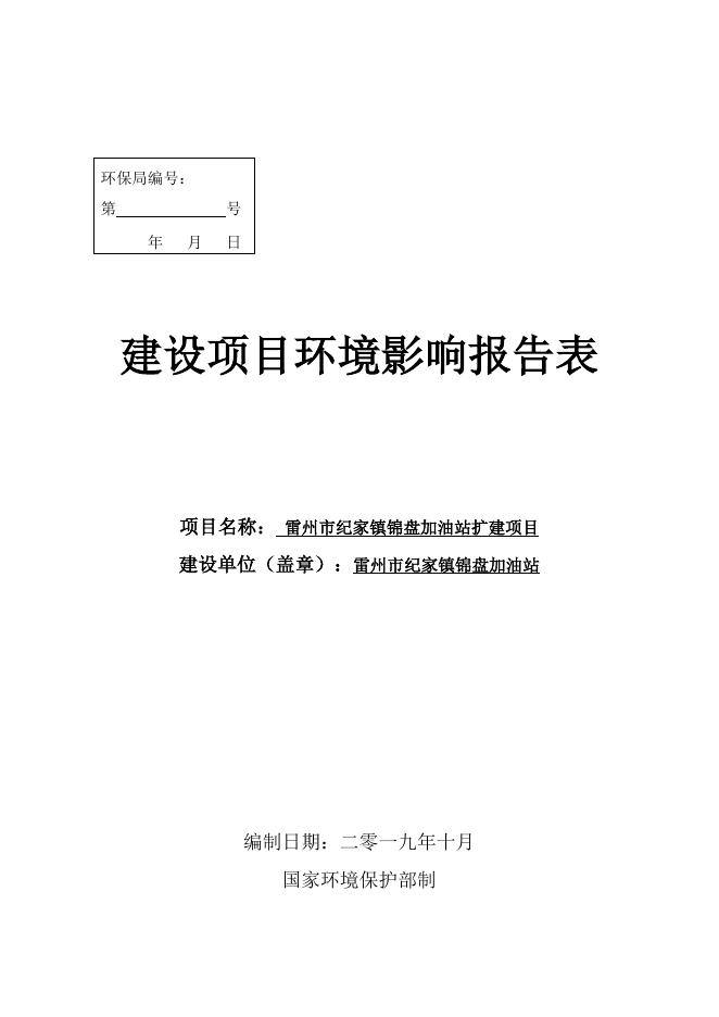 雷州市纪家镇锦盘加油站建设项目环评报告表.doc