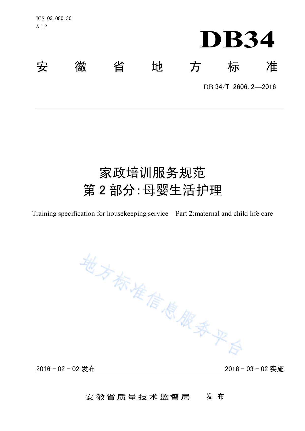家政培训服务规范 第2部分:母婴生活护理