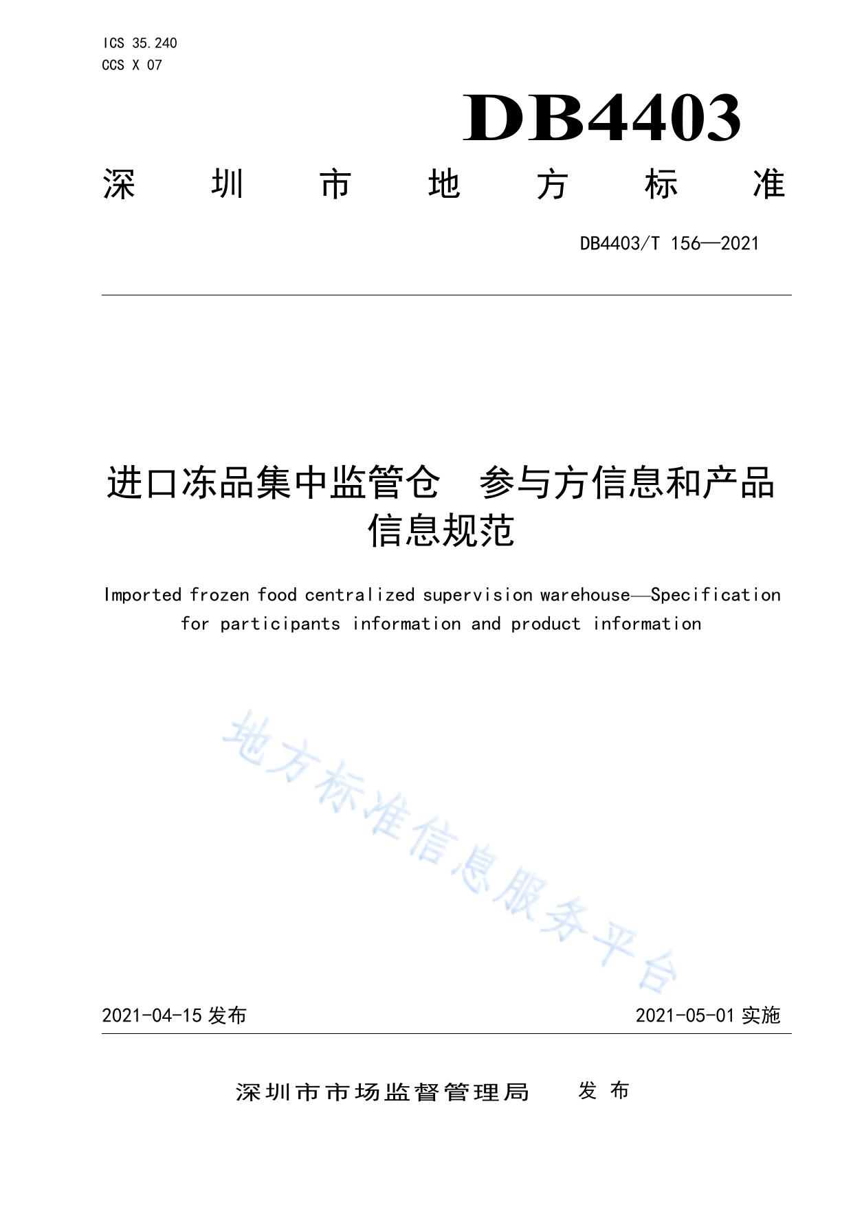 进口冻品集中监管仓 参与方信息和产品信息规范