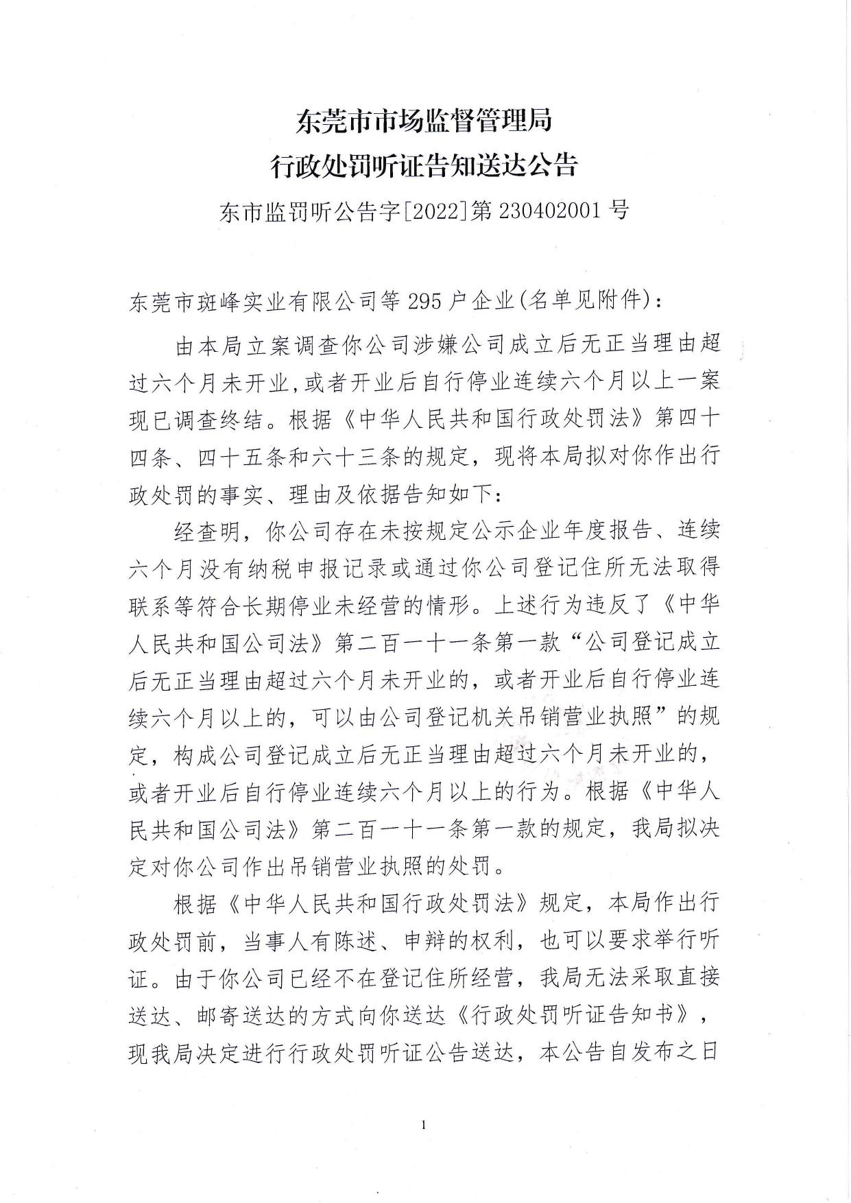 东莞市场监督管理局行政处罚听证告知送达公告(东市监罚听公告字〔2022〕230402001号).pdf