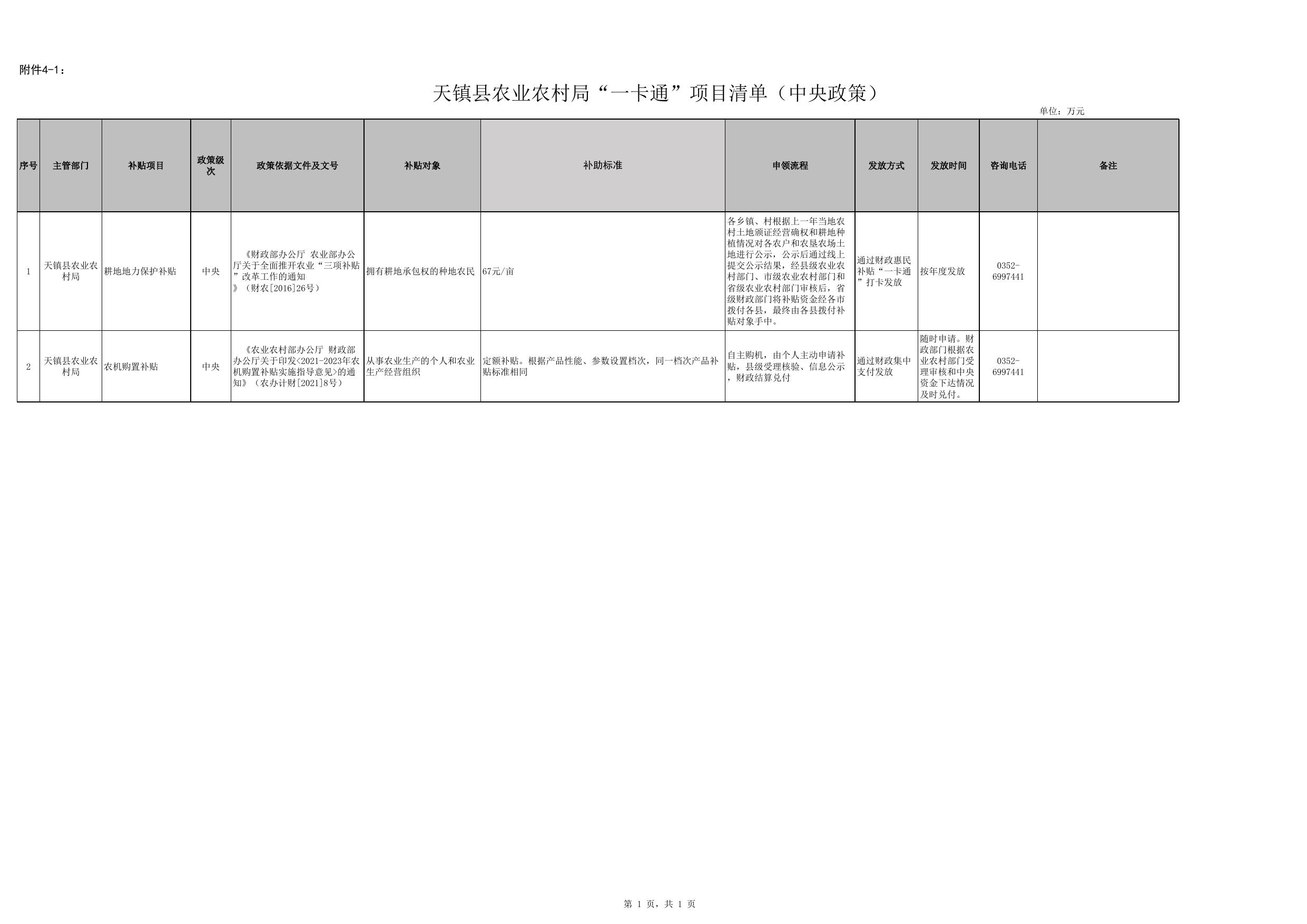 天镇县农业农村局惠民惠农“一卡通”政策清单公示公开.xlsx