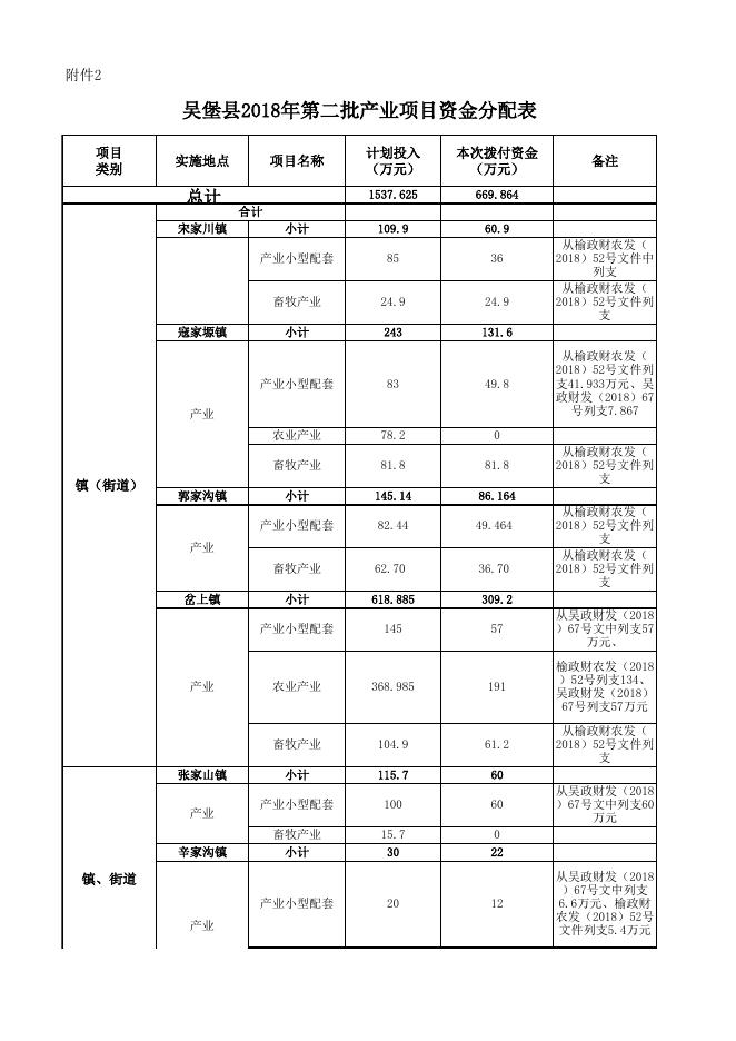 吴堡县2018年调整部分基础设施及产业项目资金分配表.xlsx