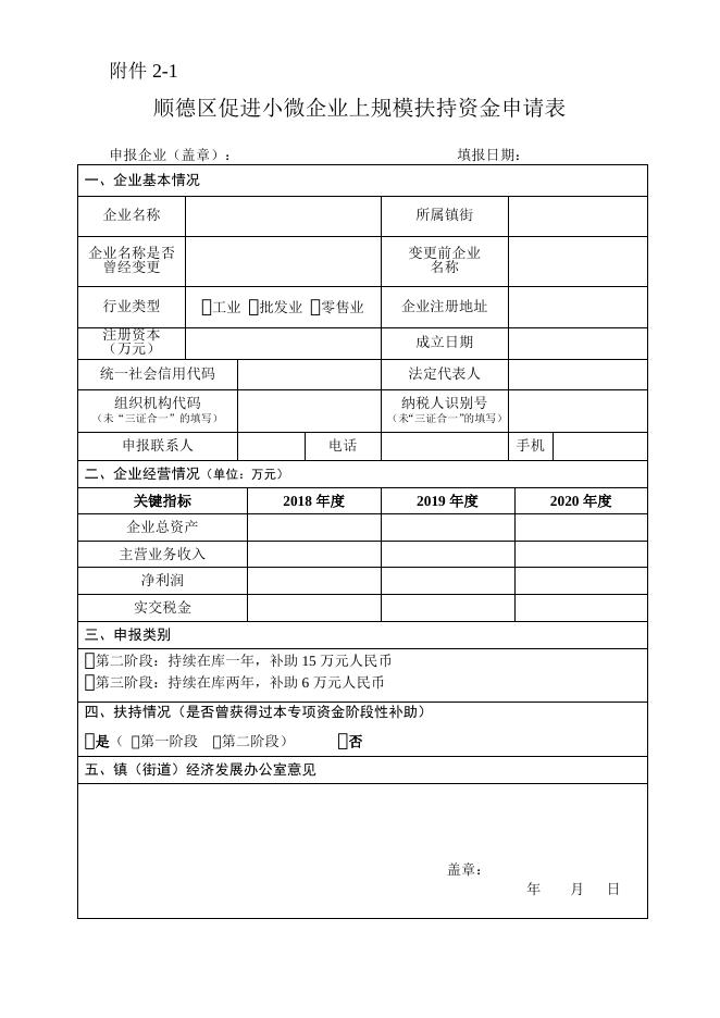 附件2-1:顺德区促进小微企业上规模扶持资金申请表.doc