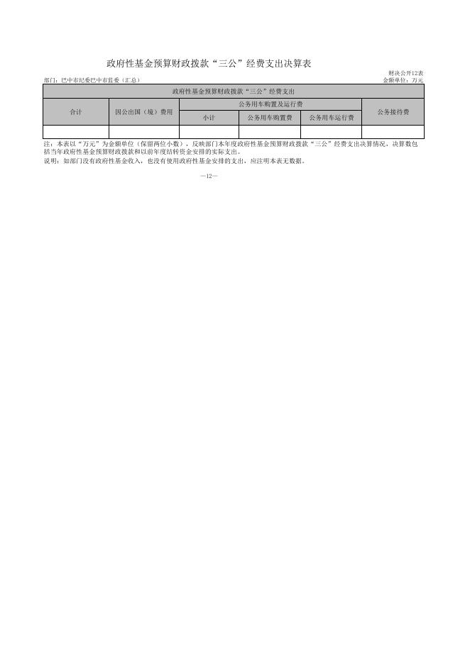 Z12 政府性基金预算财政拨款“三公”经费支出决算表(财决公开.pdf