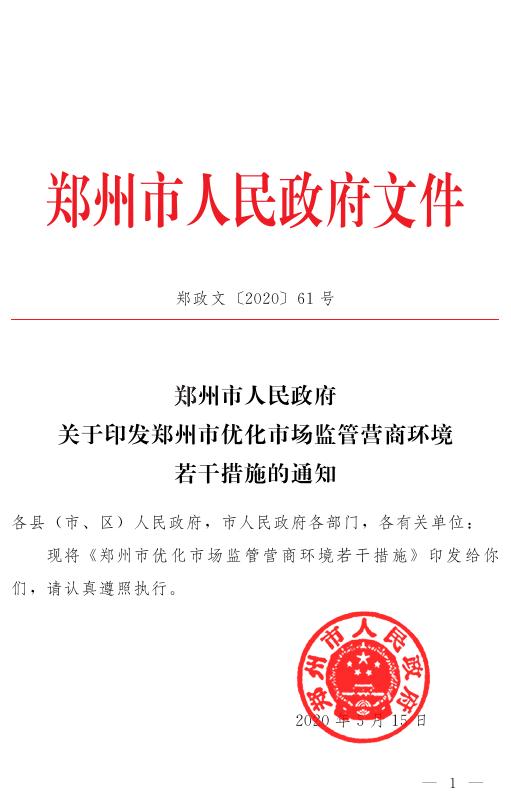 郑州市人民政府关于印发郑州市优化市场监管营商环境若干措施的通知.pdf