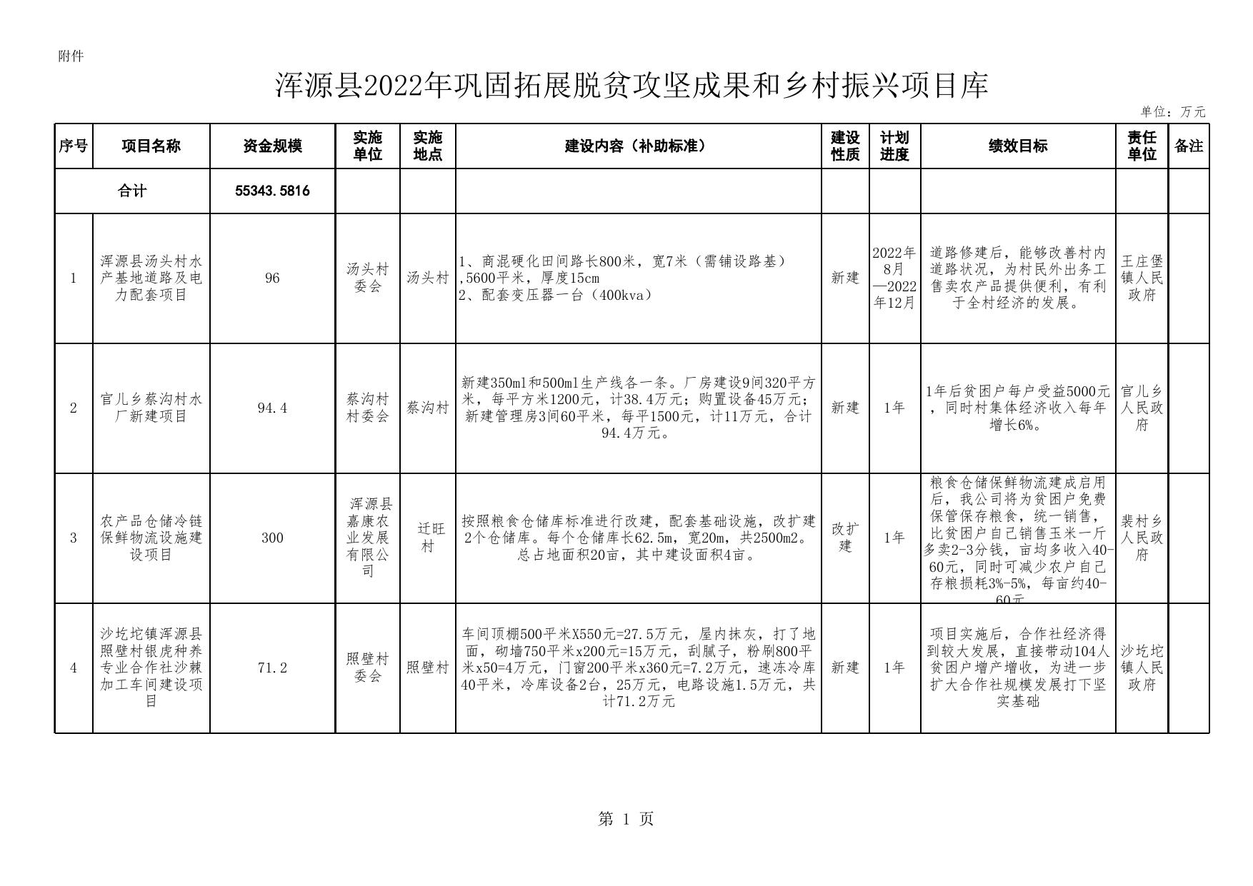 浑源县2022年巩固拓展脱贫攻坚成果和乡村振兴项目库.xls