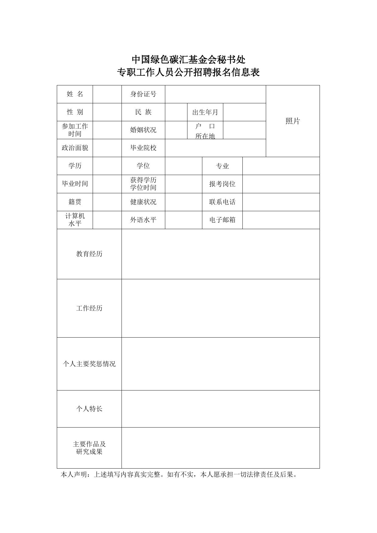 中国绿色碳汇基金会秘书处专职工作人员公开招聘报名信息表.pdf