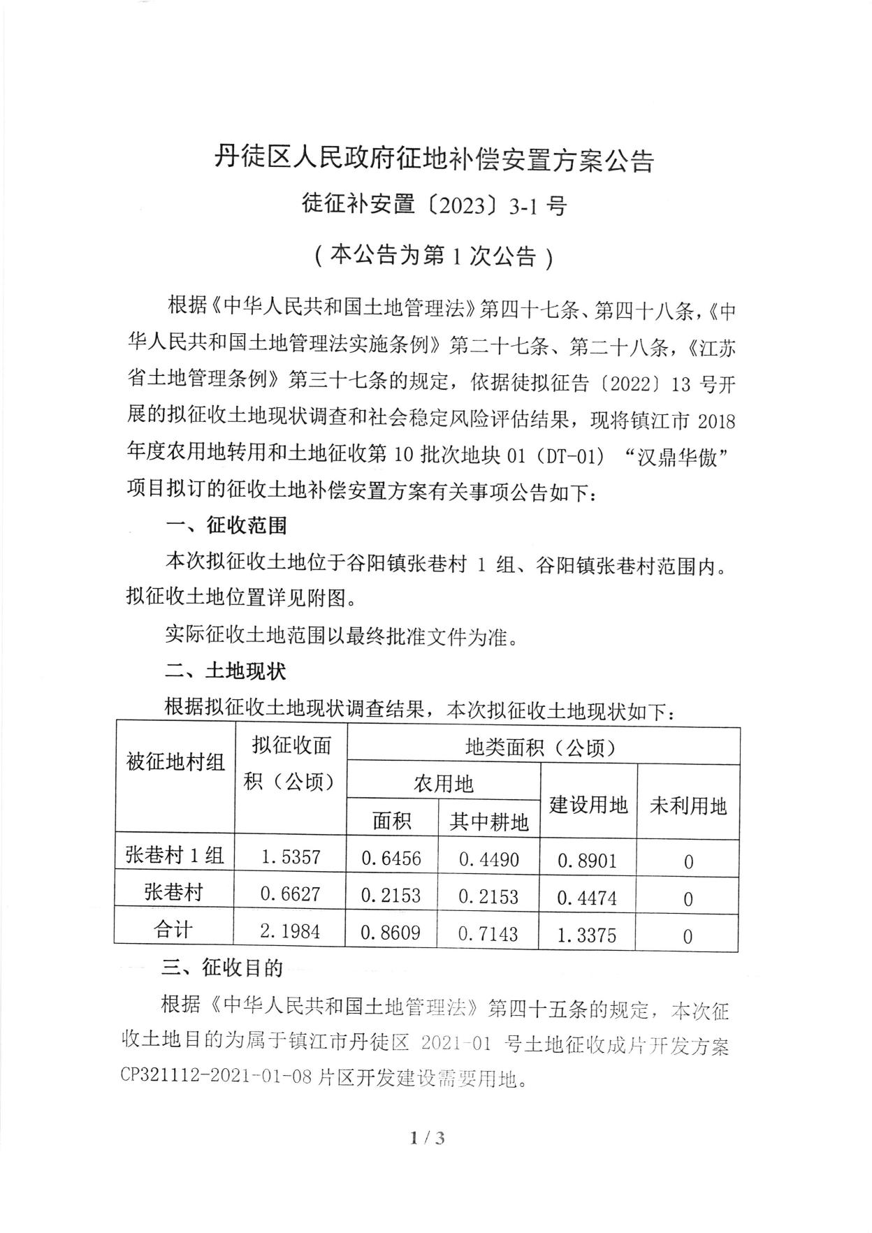丹徒区人民政府征地补偿安置方案公告 徒征补安置〔2023〕3-1号.pdf