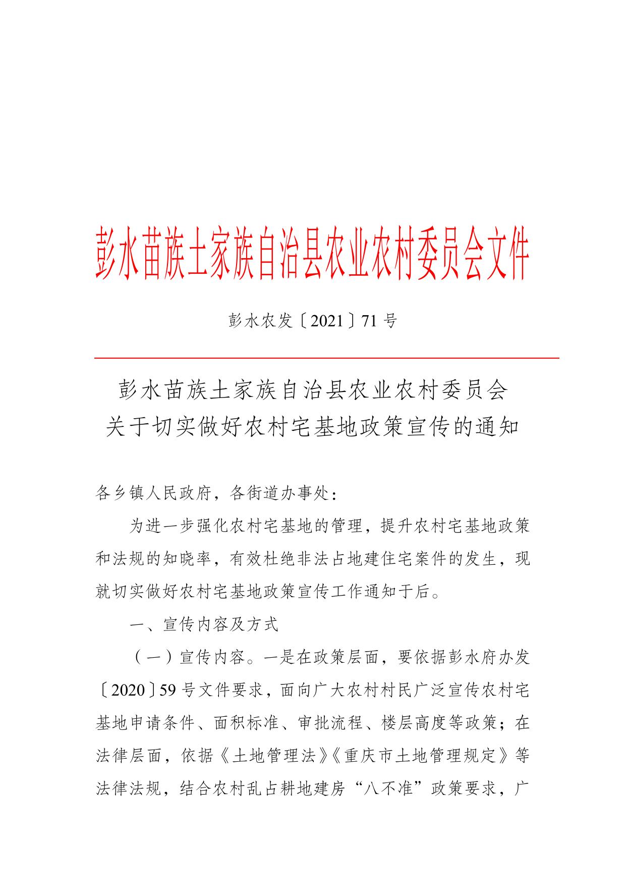 彭水农发[2021]71号关于切实做好农村宅基地政策宣传的通知.doc