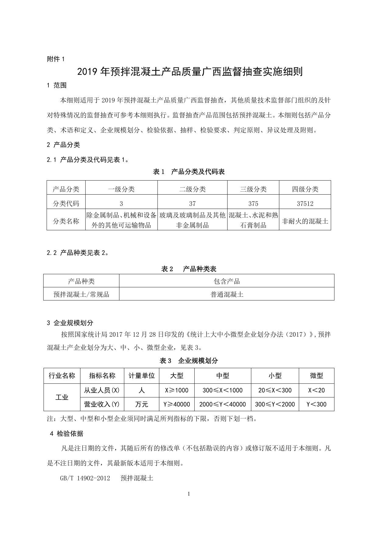 附件1:2019年预拌混凝土产品质量广西监督抽查实施细则20190827-2.doc