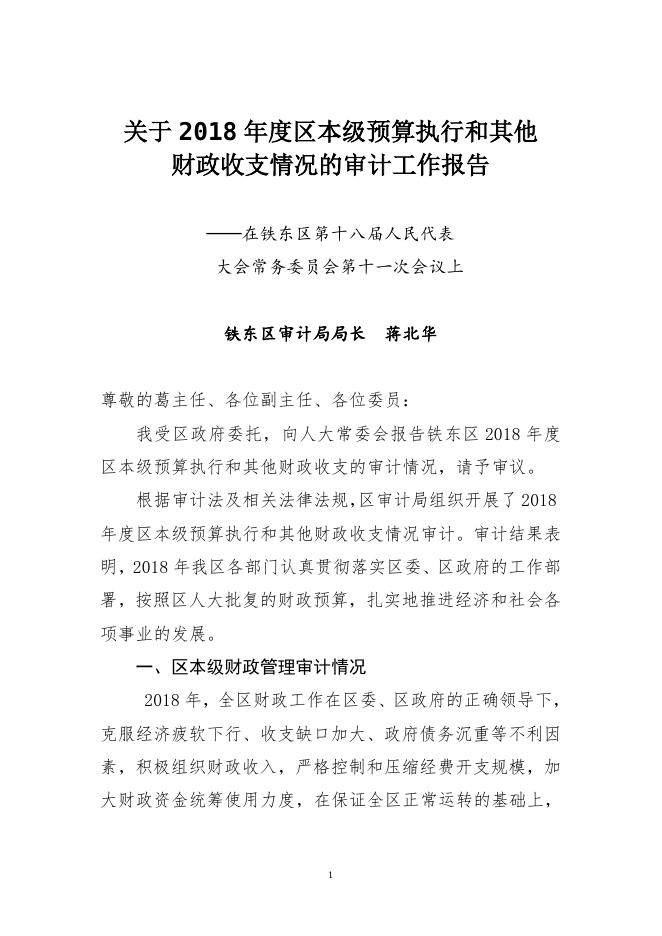 关于2018年度区本级预算执行和其他财政收支情况的审计工作报告(人大).doc