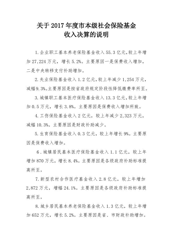 关于2017年度市本级社会保险基金收入决算的说明.doc