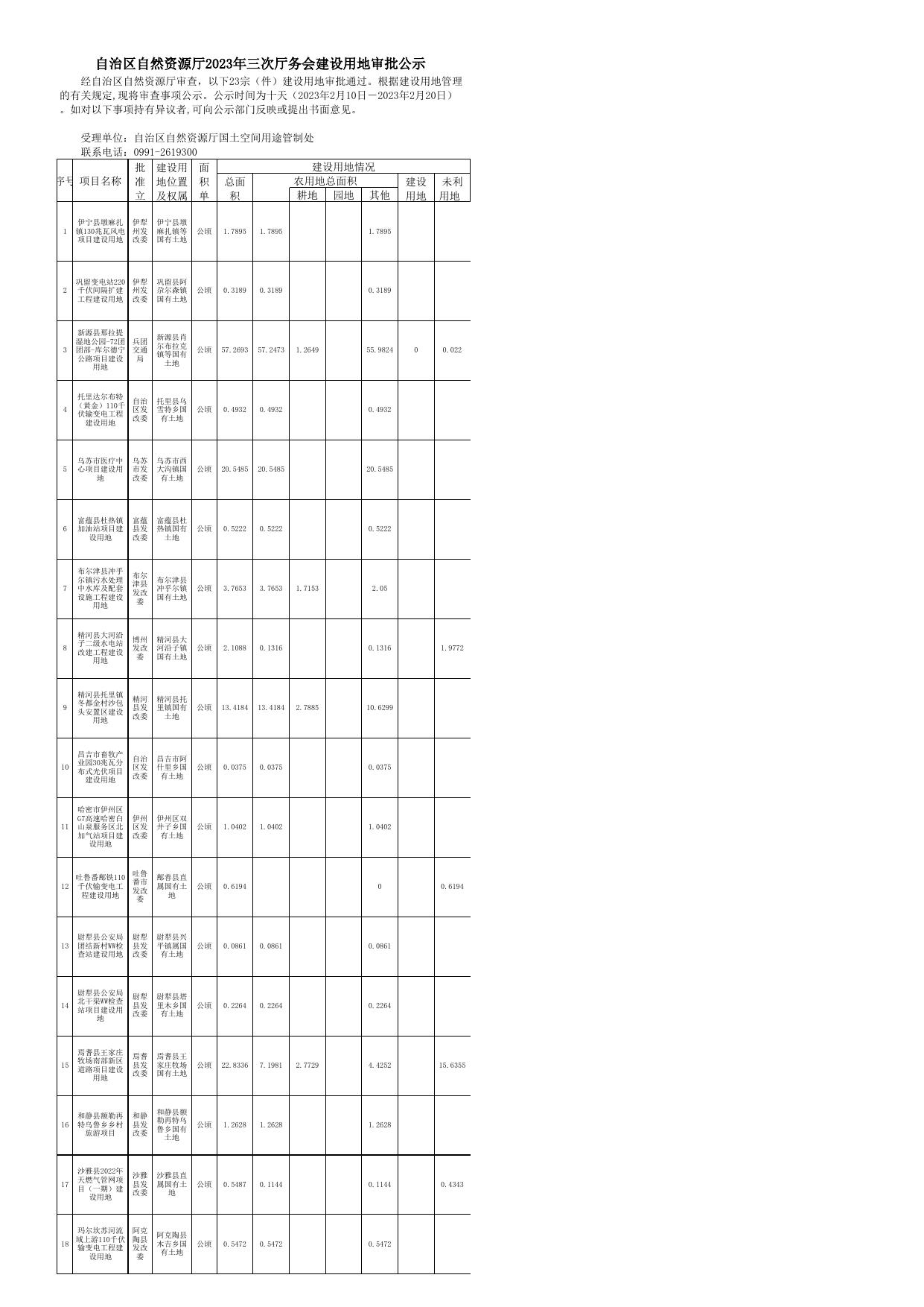 3自治区自然资源厅2023年第三次厅务会建设用地审批公示.xls