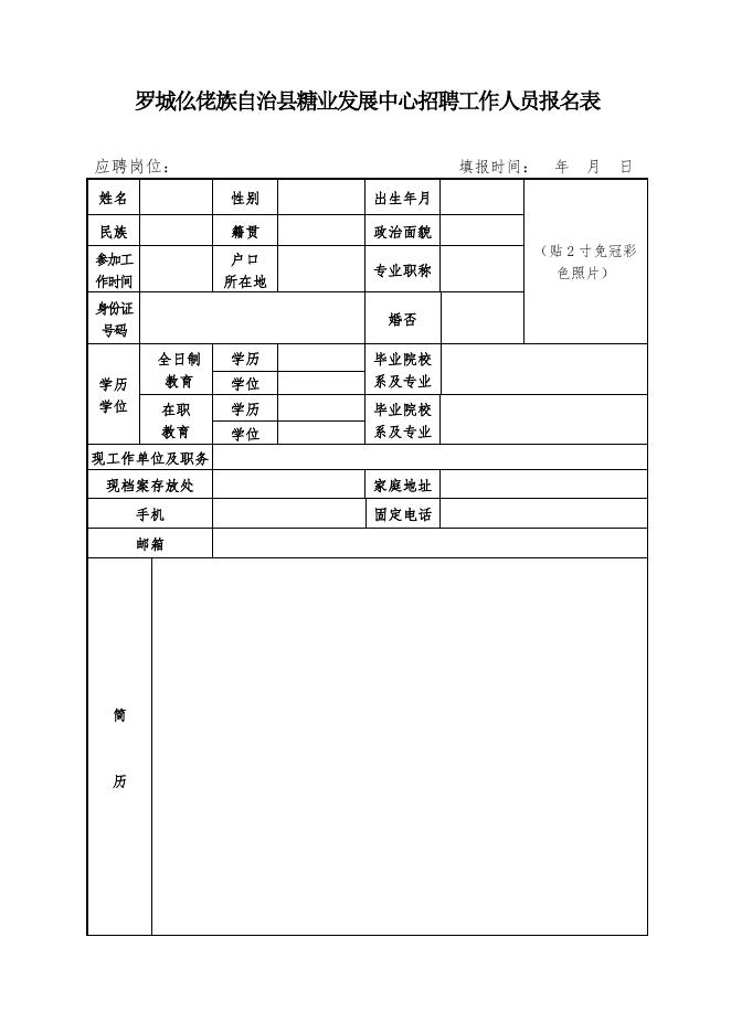 附件:罗城仫佬族自治县糖业发展中心招聘工作人员报名表.doc