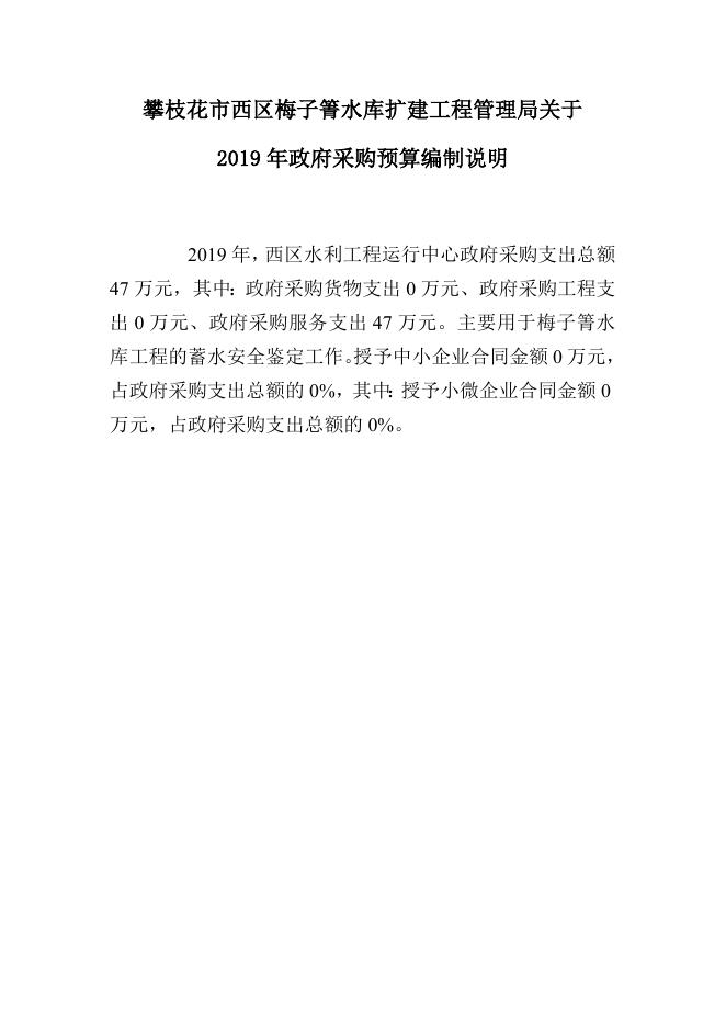 攀枝花市西区年初政府采购预算编制说明(2019年梅子箐).docx