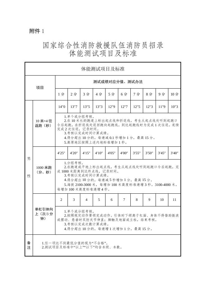国家综合性消防救援队伍消防员招录体能测试、岗位适应性测试项目及标准.doc