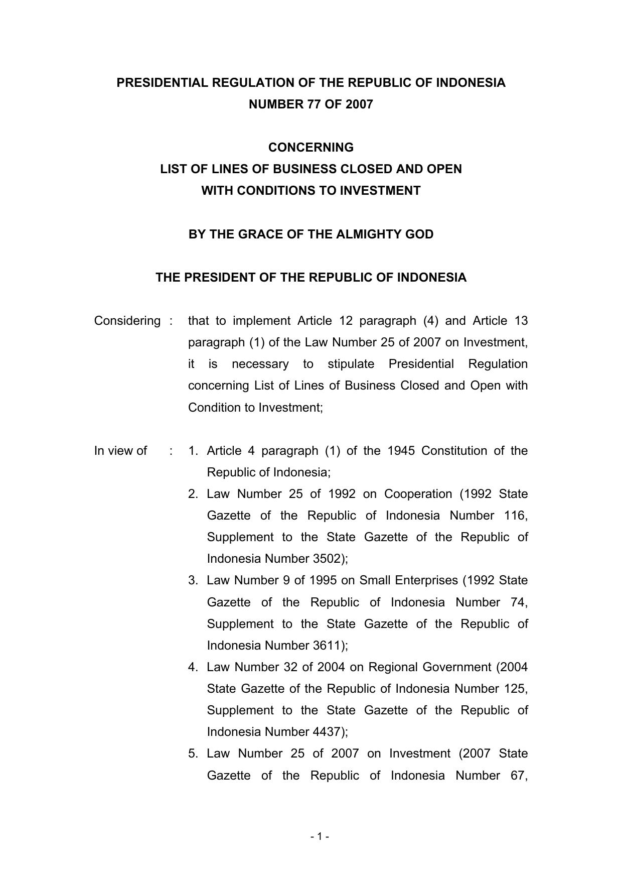 印尼2007年77号关于投资领域限制的政府条例.pdf