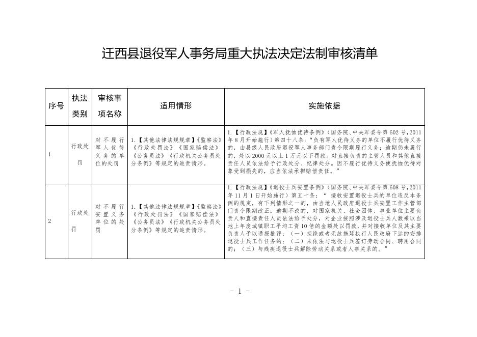 附件文档:迁西县退役军人事务局重大行政执法决定法制审核清单.docx
