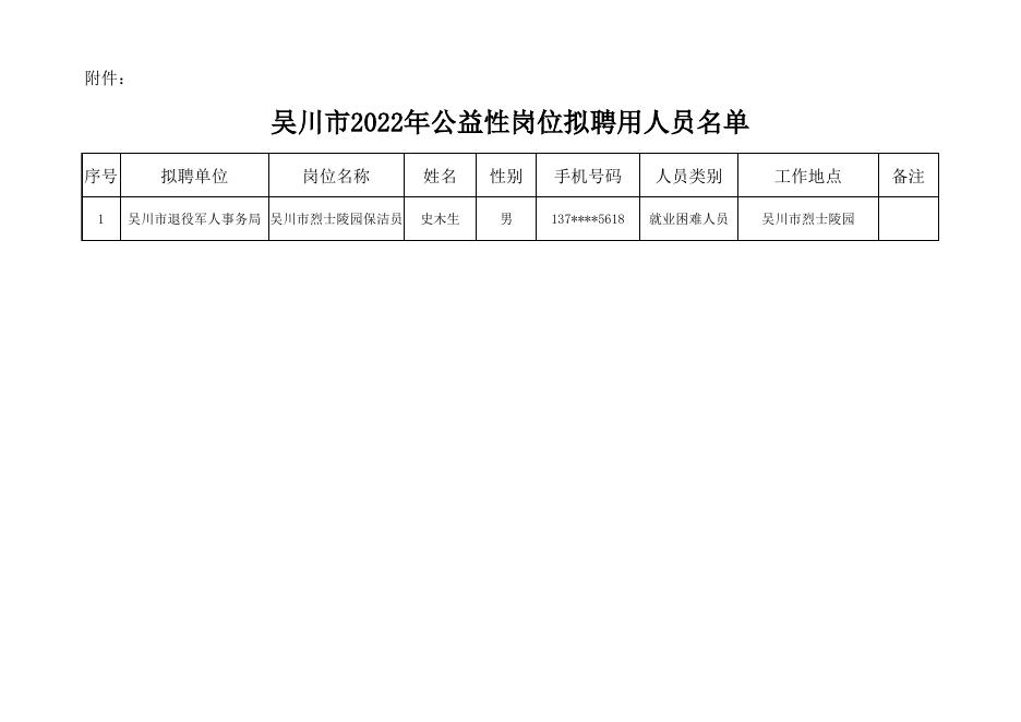 吴川市2022年公益性岗位拟聘用人员名单.xlsx