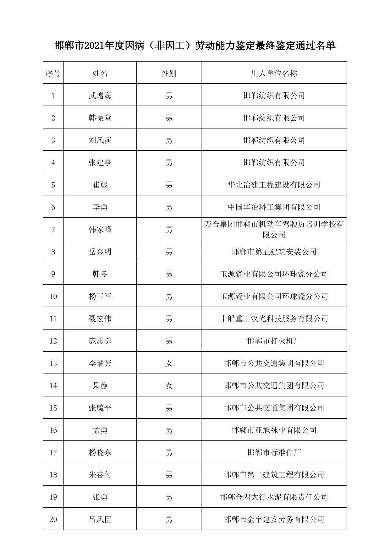 邯郸市2021年度因病(非因工)劳动能力鉴定最终鉴定通过名单.xls