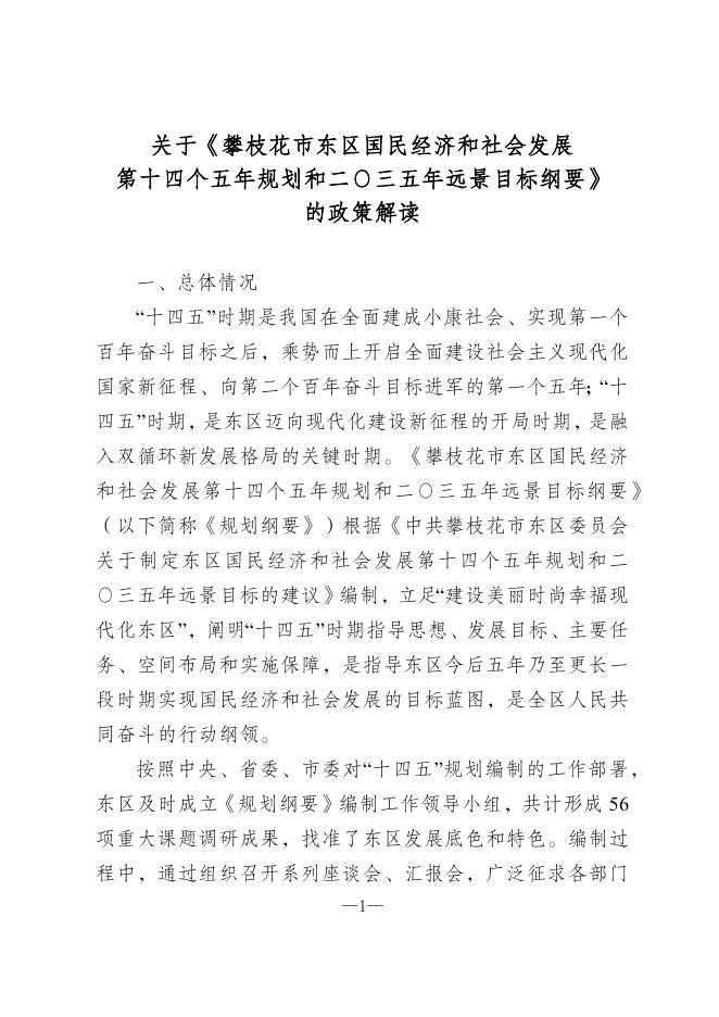 关于《攀枝花市东区国民经济和社会发展第十四个五年规划和二〇三五年远景目标纲要》的政策解读.docx