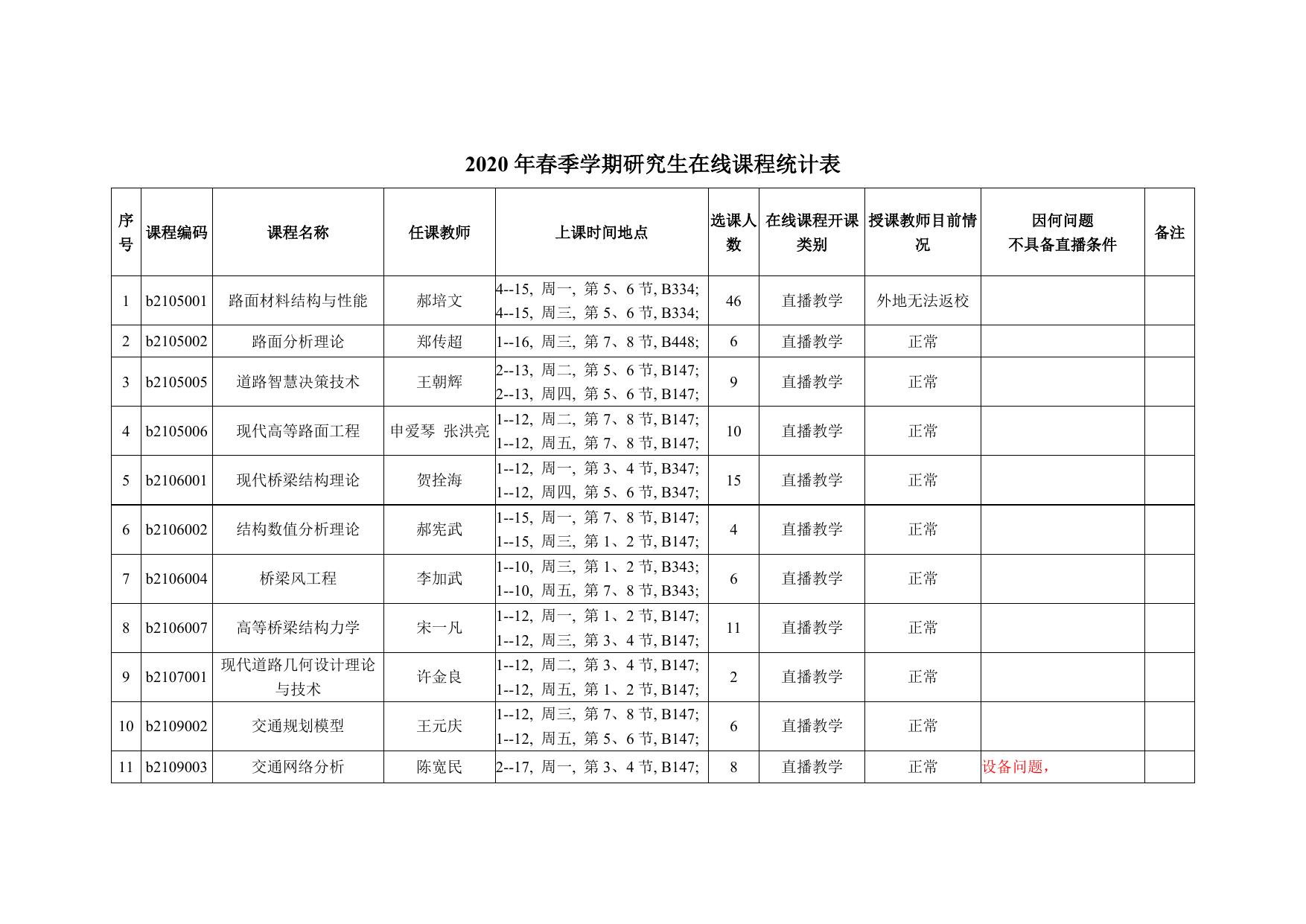 长安大学公路学院附表:公路2020年春季学期研究生在线课程统计表.doc