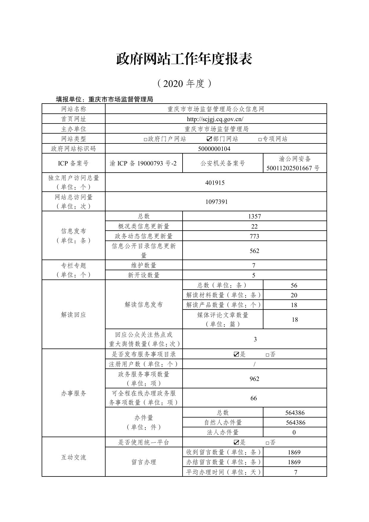 重庆市市场监督管理局2020年度政府网站工作年度报表.pdf