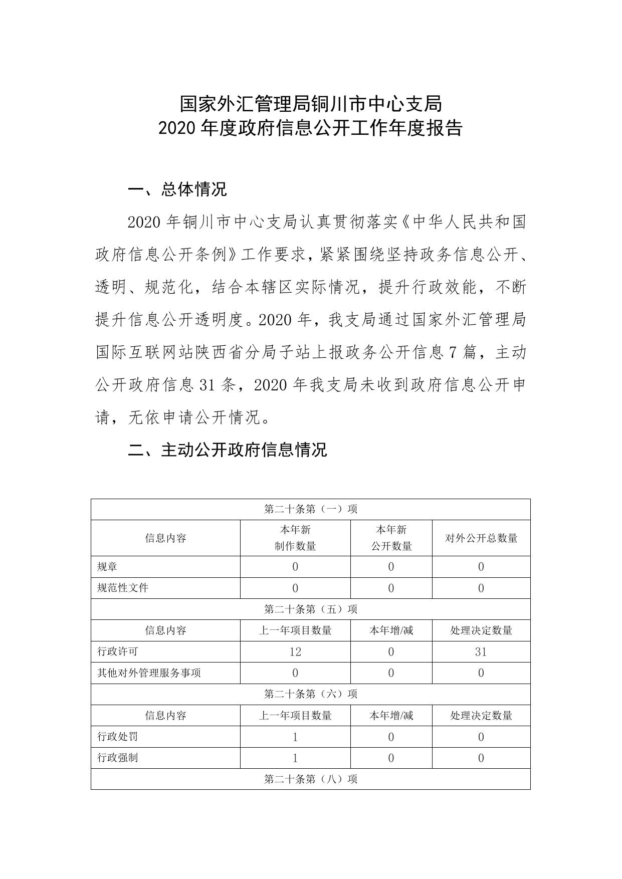 國家外匯管理局銅川市中心支局2020年度政府資訊公開工作報告.pdf