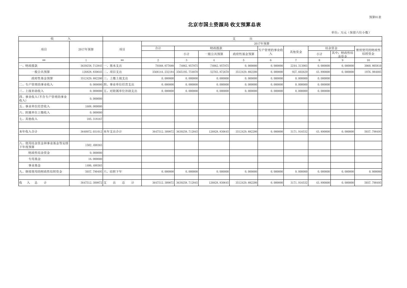 附件1:北京市国土资源局2017年收支预算总表.xls