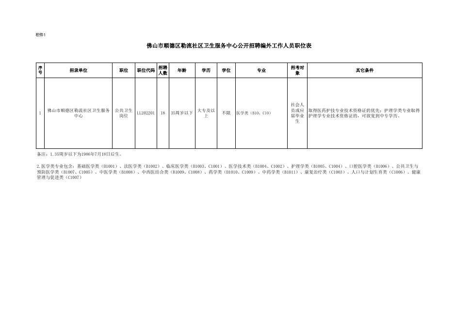 附件1:佛山市顺德区勒流社区卫生服务中心公开招聘编外工作人员职位表.xlsx