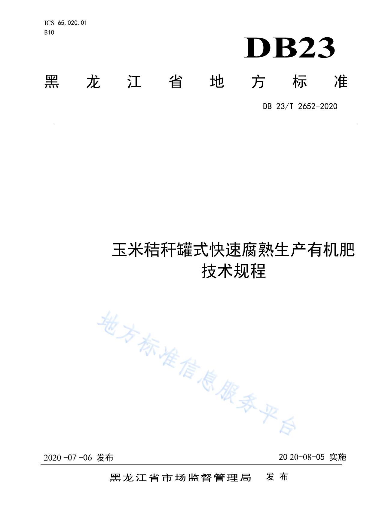 玉米秸秆罐式快速腐熟生产有机肥技术规程标准