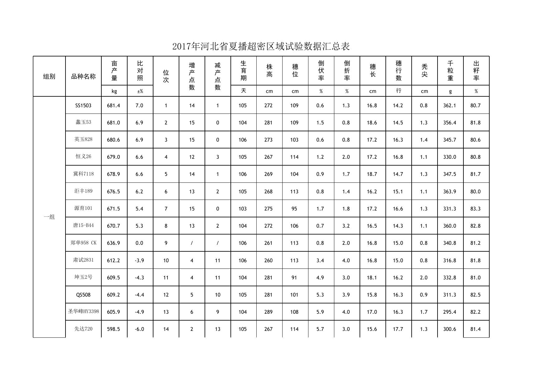2017年河北省夏玉米区域试验数据汇总.xlsx