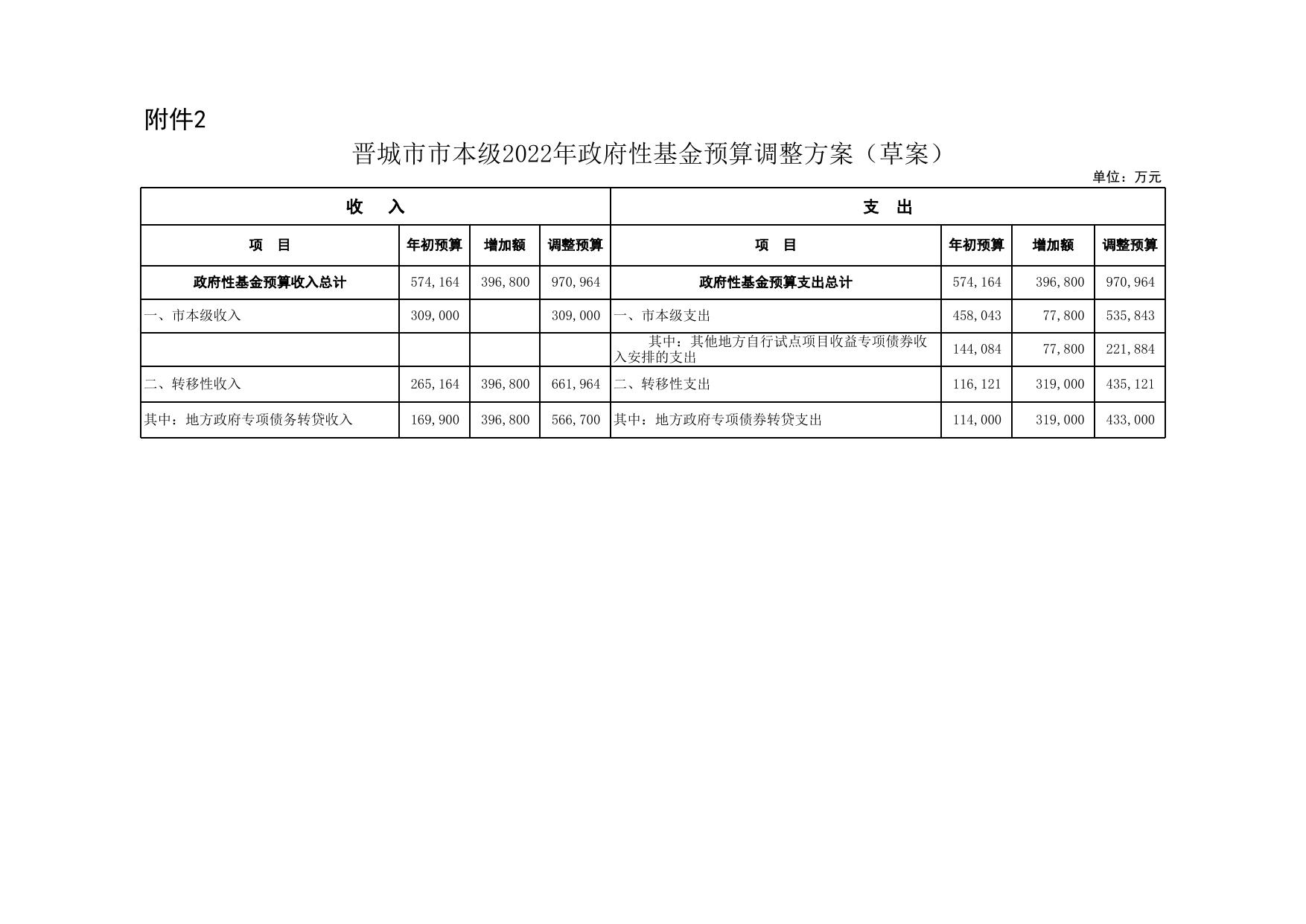 2.晋城市市本级2022年政府性基金预算调整方案(草案).xls