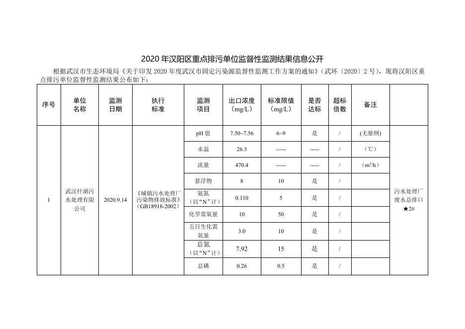 2020年汉阳区固定污染源监督性监测结果信息公开.docx