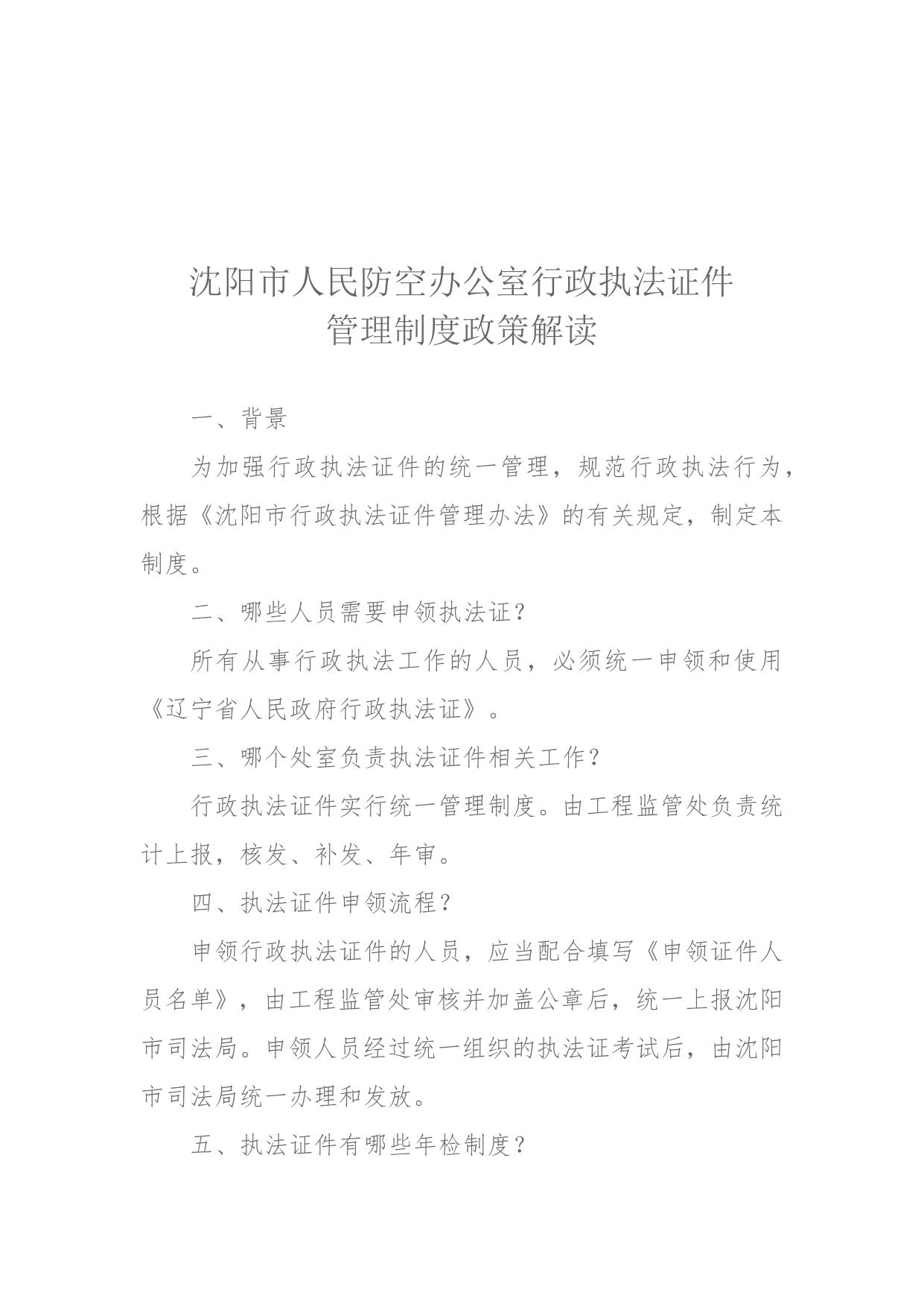 《沈阳市人防办行政执法证件管理制度》政策解读.docx