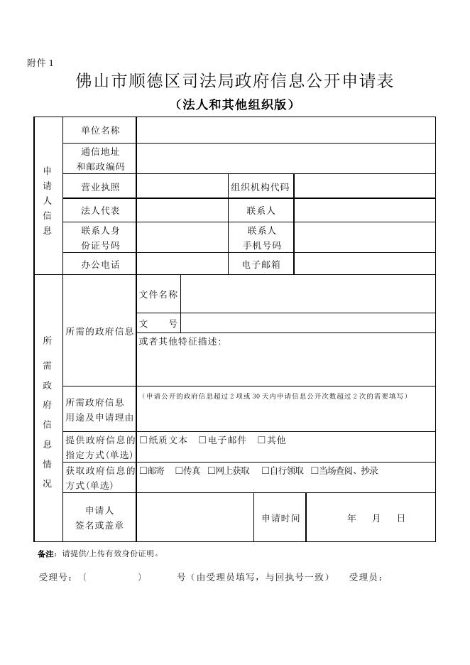 附件2:佛山市顺德区司法局信息公开申请表(法人或其他组织版).doc