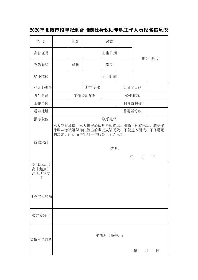 北镇市民政局招聘派遣合同制社会救助专职工作人员报名表.xls