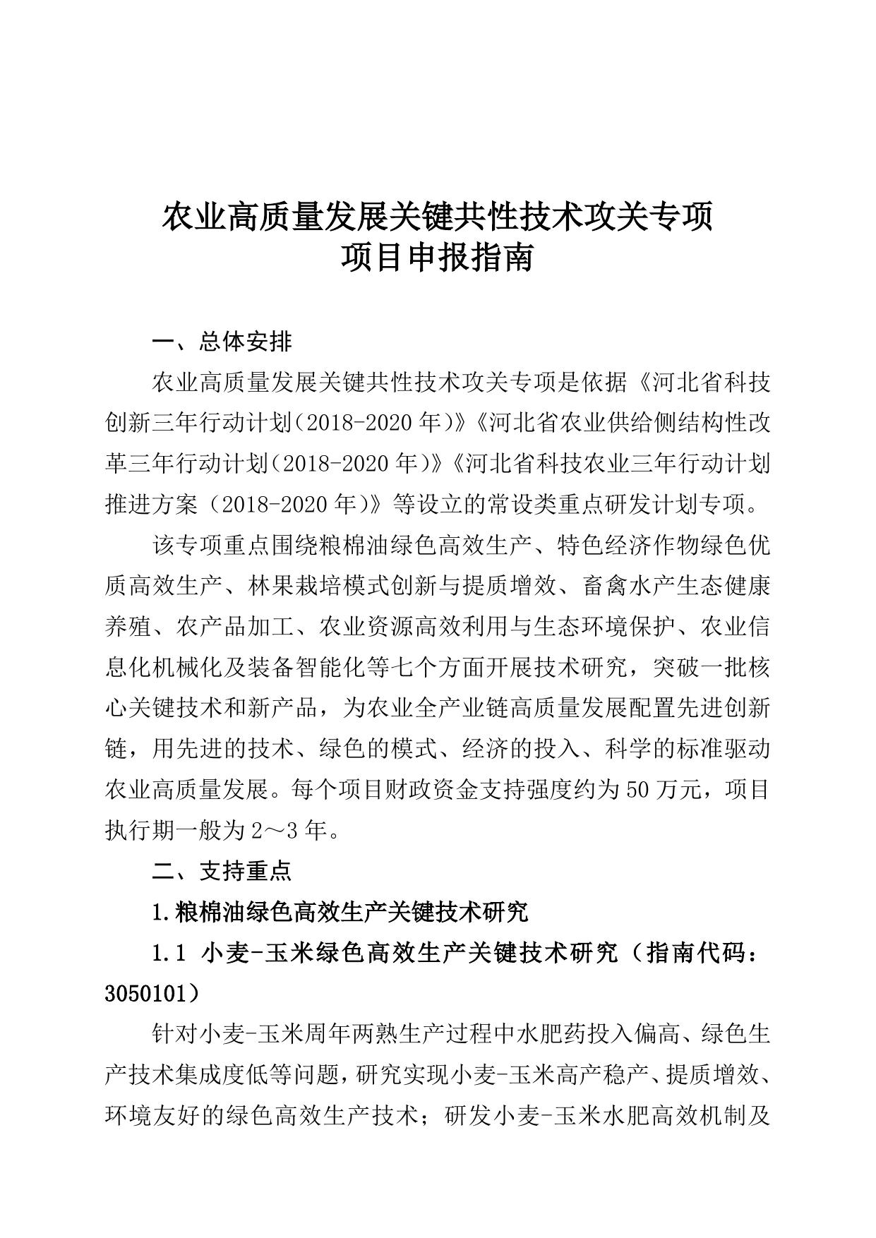 .农业高质量发展关键共性技术攻关专项项目申报指南.doc