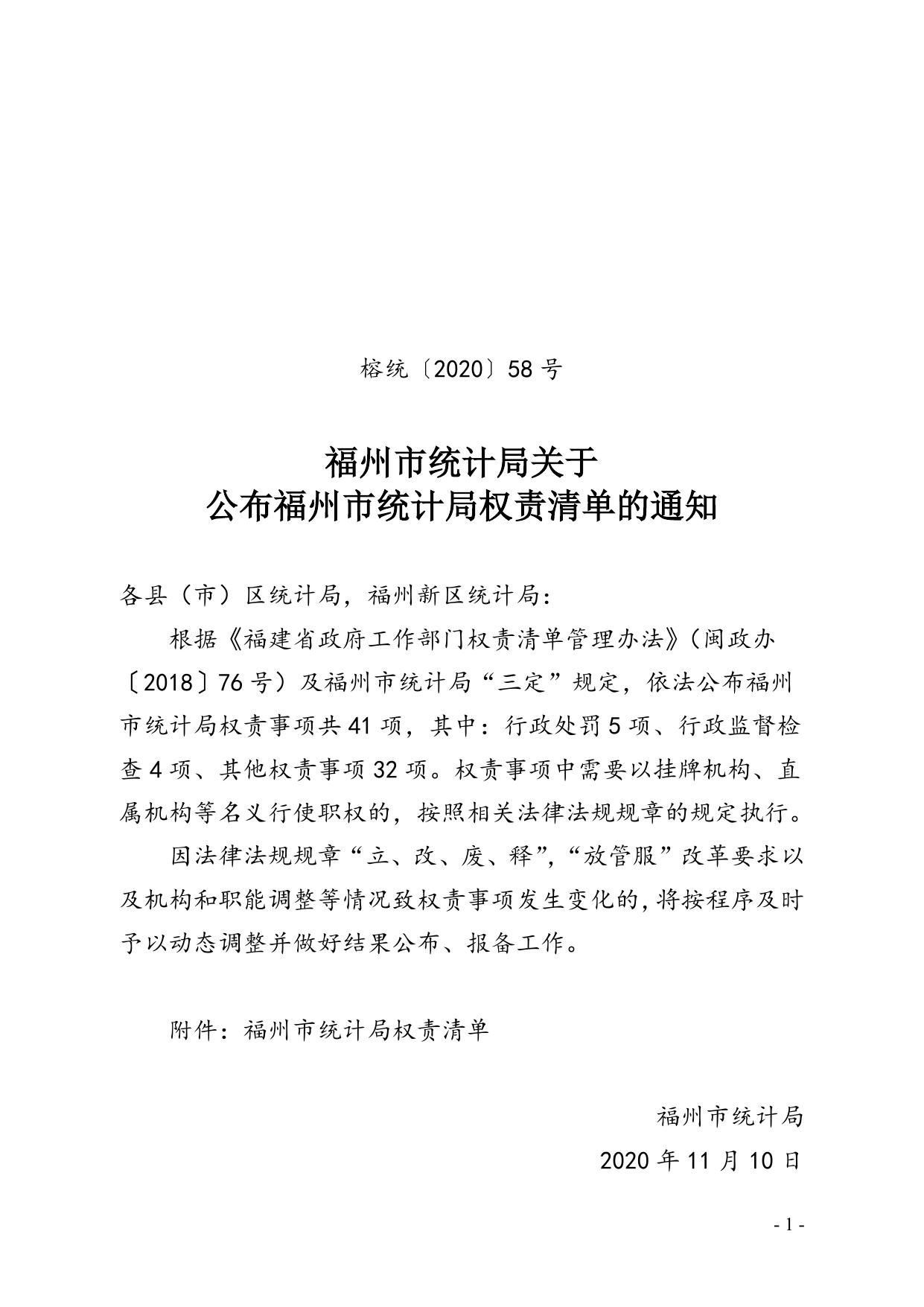 福州市统计局关于公布福州市统计局权责清单的通知.doc