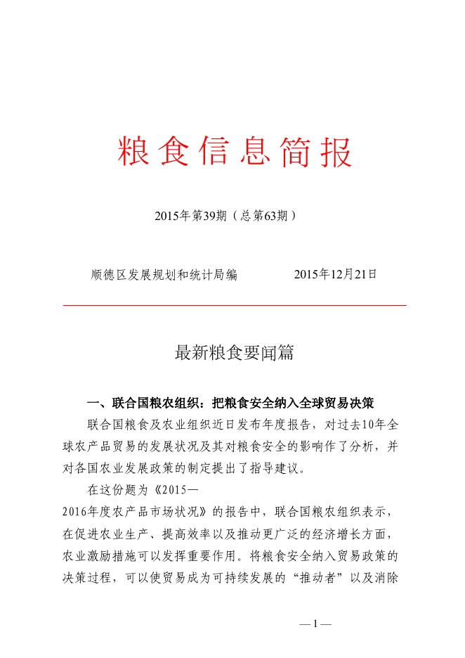粮食信息简报(2015年第39期,总63期)最新粮食要闻篇.pdf