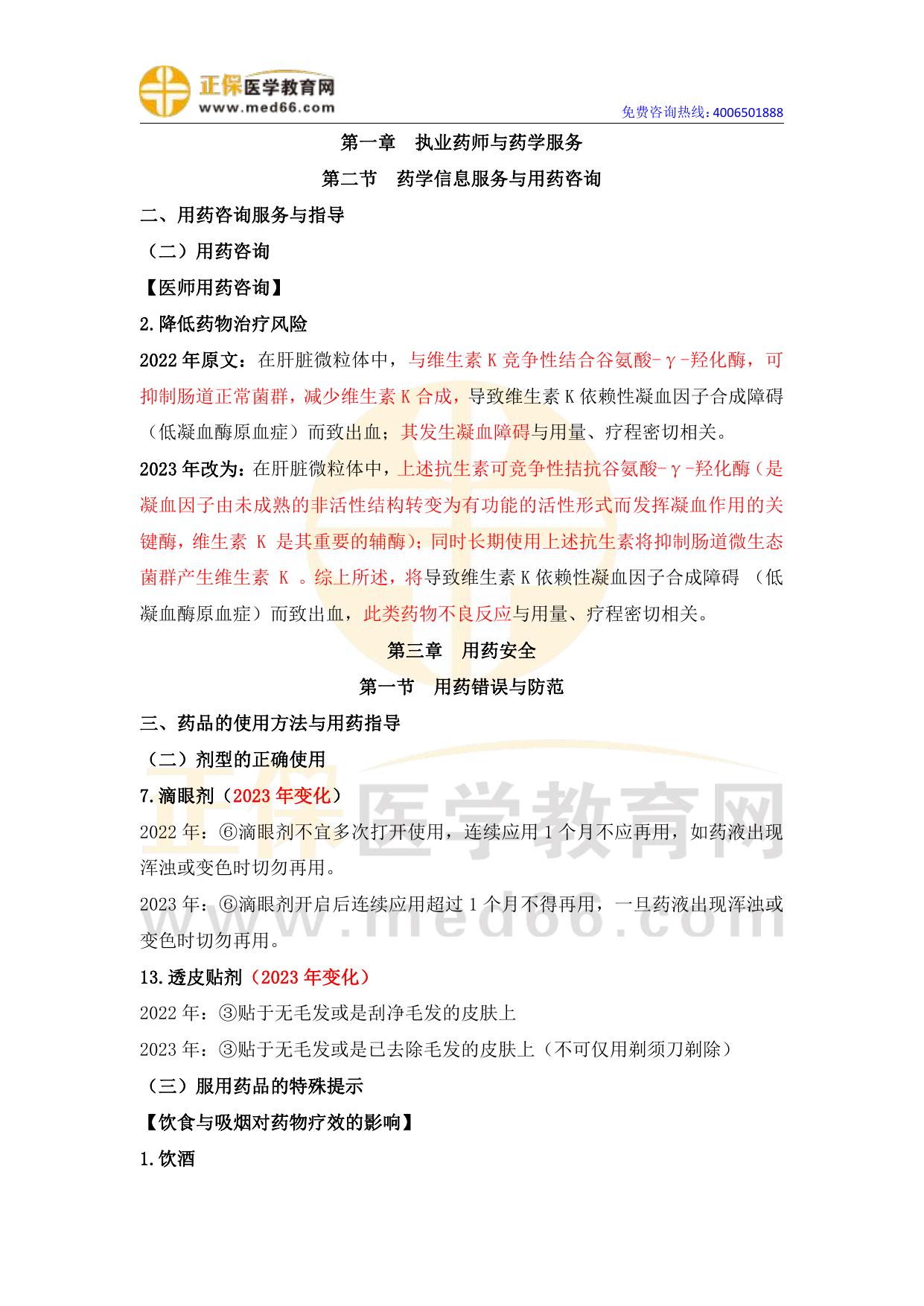 2023年执业药师《药学综合知识与技能》教材变动情况汇总(完整版).pdf
