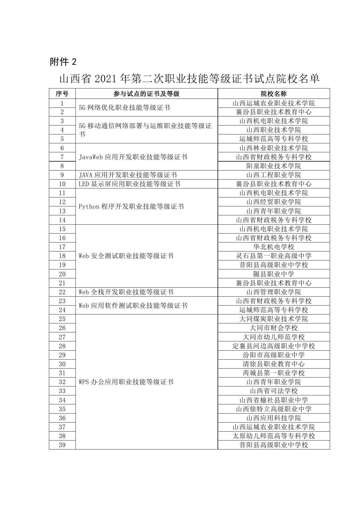 山西省2021年第二次职业技能等级证书试点院校名单.docx