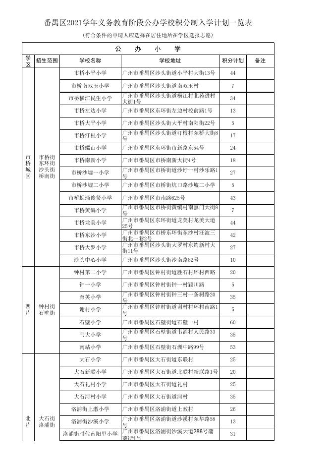附件:番禺区2021学年义务教育阶段公办学校积分制入学计划一览表.xls