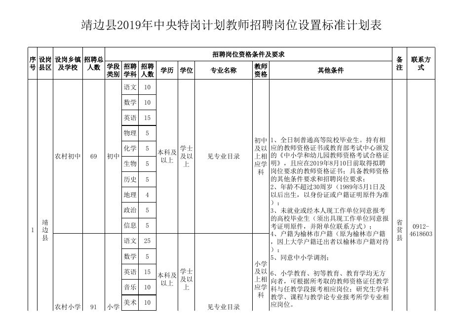 靖边县2019年农村义务教育阶段学校教师特设岗位计划招聘公告_招考录用_靖边县人民政府.xlsx